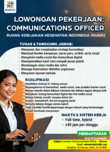 OPEN VACANCY Communications Officer (Full-time) Ruang Kebijakan Kesehatan Indonesia (RUKKI)...