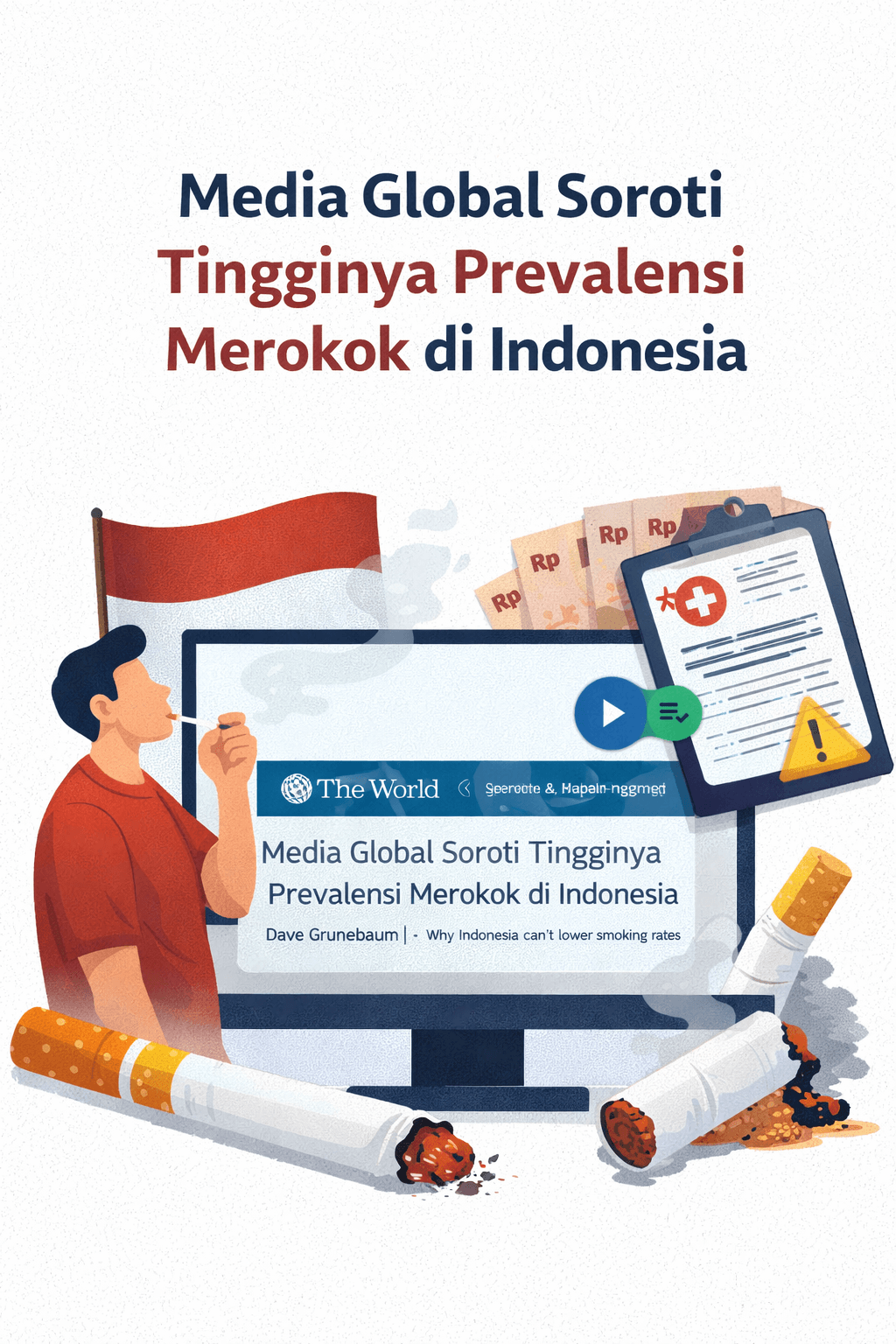 Media internasional The World pada 17 Februari 2026 menyoroti tantangan Indonesia dalam menurunkan prevalensi merokok melalui laporan berjudul “Why Indonesia Can’t Lower Smoking Rates” yang ditulis oleh Dave Grunebaum.