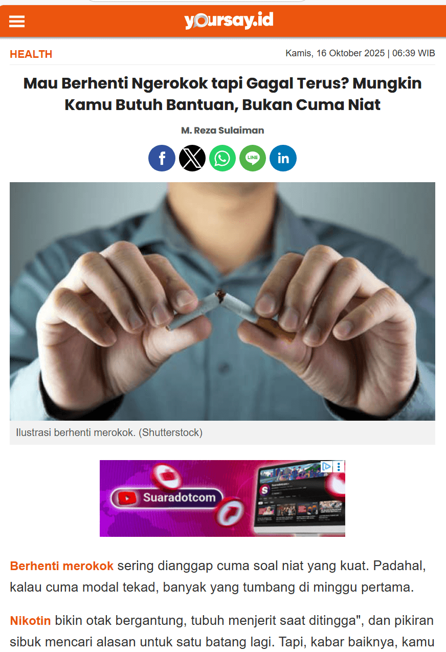 Berhenti merokok sering dianggap cuma soal niat yang kuat. Padahal, kalau cuma modal tekad, banyak yang tumbang di minggu pertama. Nikotin bikin otak bergantung, tubuh menjerit saat ditingga”, dan pikiran sibuk mencari alasan untuk satu batang lagi. Tapi, kabar baiknya, kamu tidak harus jalan sendirian dalam perjuangan ini. Baru-baru ini, Ruang Kebijakan Kesehatan Indonesia (RUKKI) menyoroti betapa kuatnya pengaruh industri tembakau di Indonesia. Iklan, sponsor, hingga kampanye sosial kerap membungkus rokok dan vape sebagai pilihan gaya hidup.