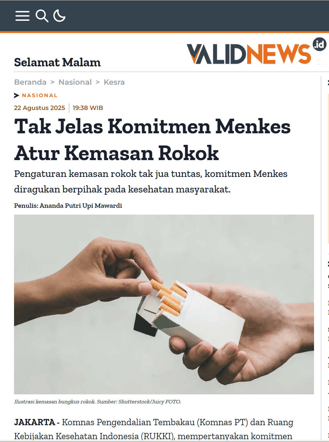 Pengaturan kemasan rokok tak jua tuntas, komitmen Menkes diragukan berpihak pada kesehatan masyarakat.